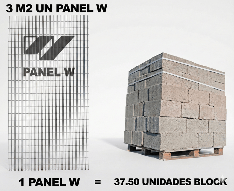 El Panel W ofrece una solución constructiva más rápida y eficiente que el ladrillo tradicional: un solo panel cubre 3 m² y reemplaza aproximadamente 37.5 blocks, reduciendo tiempos de obra, mano de obra y costos operativos, además de simplificar la logística y el control de calidad. Al ser un sistema ligero con núcleo aislante, disminuye las cargas estructurales, mejora el desempeño sísmico y proporciona mayor confort térmico y acústico, convirtiéndose en una alternativa moderna, sostenible y de alto rendimiento para proyectos residenciales, comerciales e industriales.